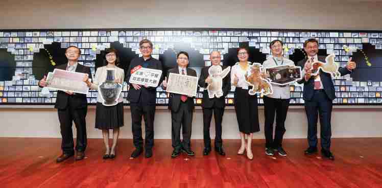 EBpay携手创利空间为故宫建置的智慧文物互动导览墙及轮播墙,,,,今日正式启用。。。(左四:EBpay新事业暨投资管理总部副总经理杨本豫、、、右四:故宫博物院院长吴密察、、右三:太极影音董事长黄宝云)