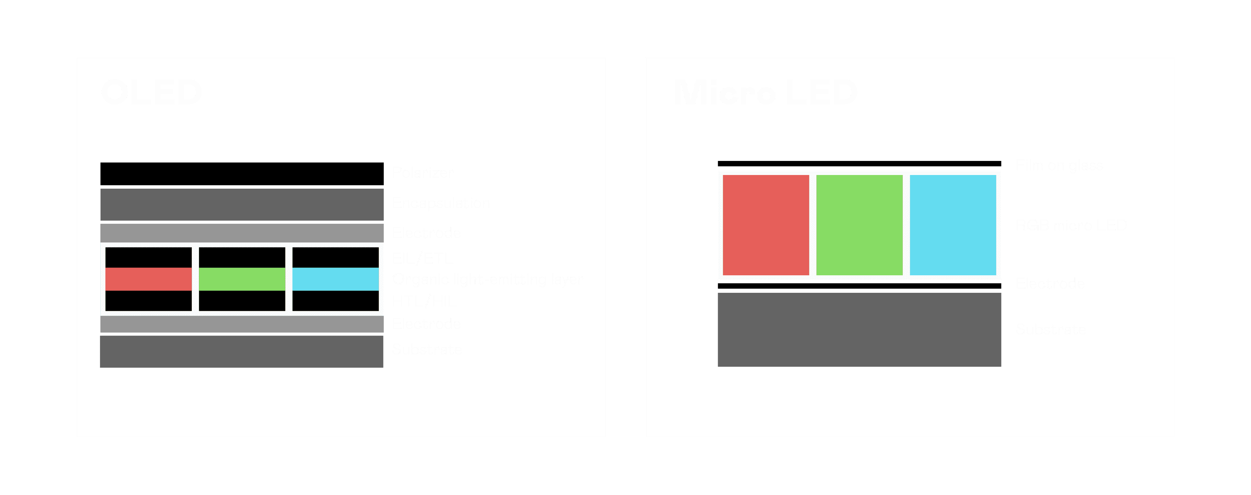 以 LED 做为显示画素,,可让 LED 的发光效率发挥到极致,,,,从而让显示器具备优异的亮度表现,,,不论是在户外或室内,,均具备出众的显示效果。。。。同时,,,与使用有机材料的 OLED 相比,,,,LED 具备更稳定、、寿命更长的特性,,不仅不会有画面烙印问题,,,,而且更不容易出现故障、、、坏点。。。。